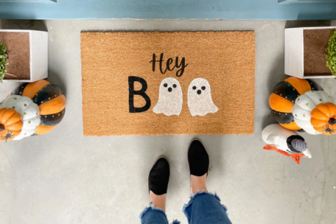 Create a hand-painted, Halloween-themed coir doormat for your entryway.