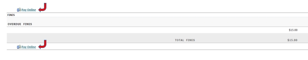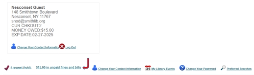 Once you're logged in, the amount of unpaid fines and bills will be indicated. Click on the link.