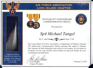 After his service, Mr. Tangel returned to the Middle Country Central School District and taught for 35 years. Mr. Tangel is an active member of the Vietnam Veterans of America and is also an avid baseball fan. He plays Old Time Baseball at various fields on Long Island.